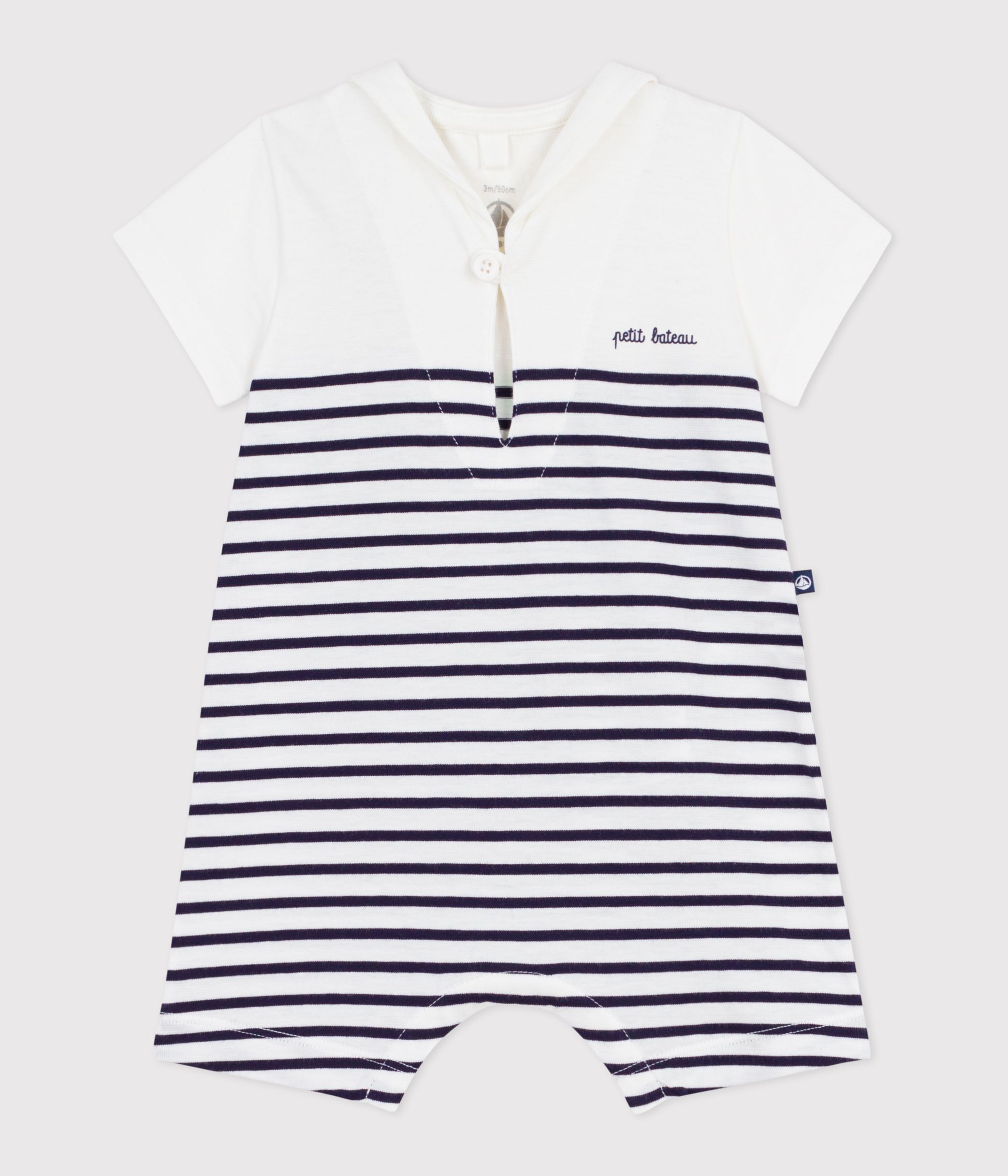 Pelele corto de algodón a rayas con cuello de uniforme para bebé